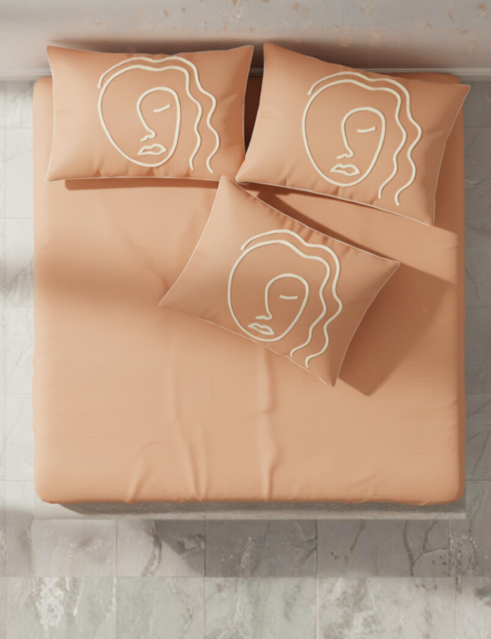 Our Burnt Orange pillowcase is made from 100% cotton and shows a calm face outline in ivory. The fabric is soft, breathable, and gentle on skin. It keeps its color and is easy to wash and dry. The warm orange works well with neutral colors and wood, adding cozy, modern style to bedrooms and living rooms.