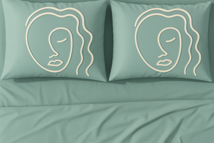 Our Cloud Blue pillowcase is made from 100% cotton and features a simple face line in cream. The fabric feels soft, stays cool, and is kind to skin. It resists fading and wrinkles, and it is machine washable. The light blue brightens any space and mixes easily with white and light wood for a calm, clean look.