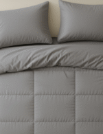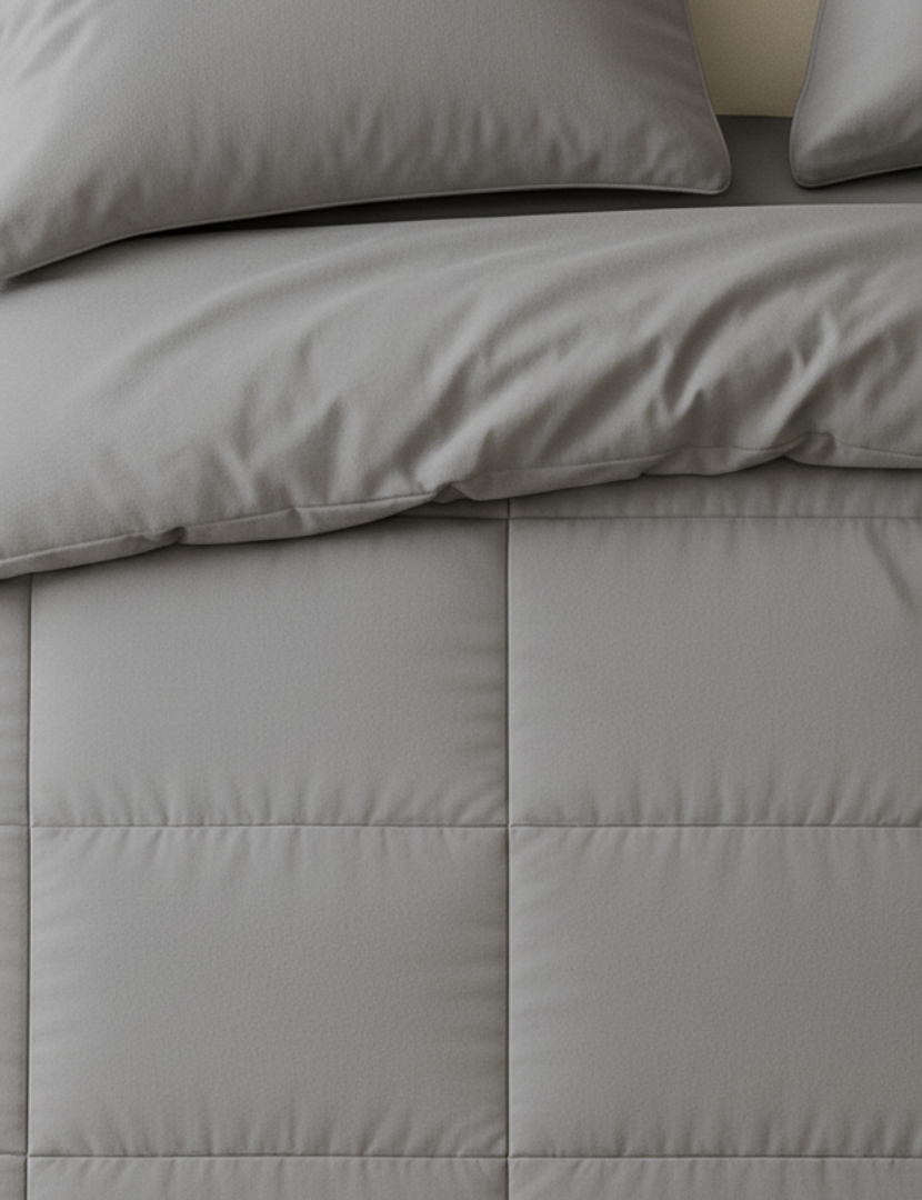Hotel-grade king duvet (86 x 96 in). 100% cotton shell and fill. Quilted stitching ensures even loft and breathable insulation. Machine-washable for easy care. Fits standard king frames. Durable construction delivers consistent comfort for residential and hospitality use. Space grey colorway.